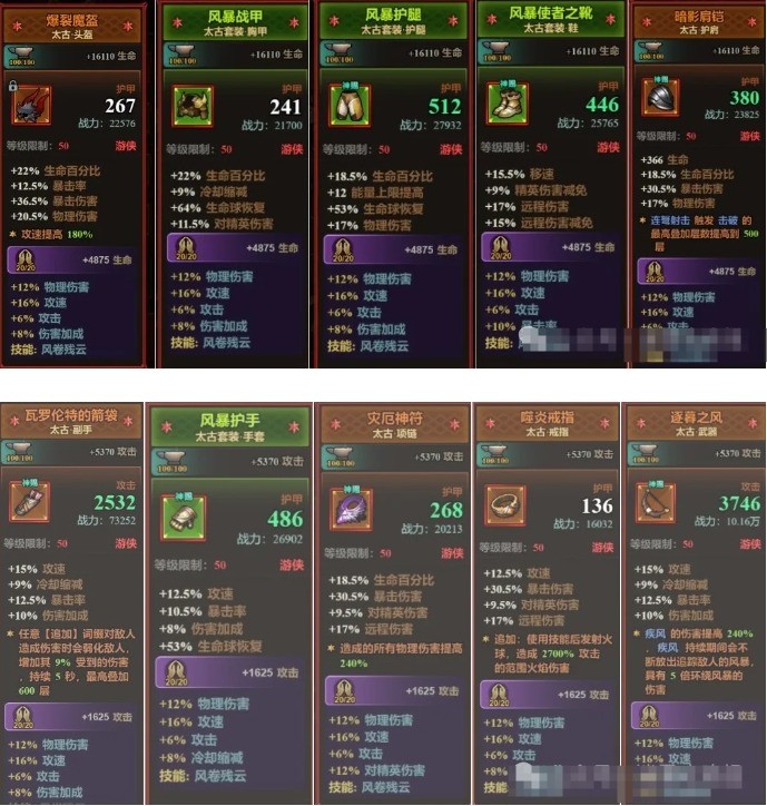 其实这个物疾风,也可以叫攻速疾风,就是因为他的神铸技能风卷残云(攻速高于160%时,每高6%则获得2.5%伤害加成),这个技能就要求我们的神铸词条和基础词条,必须要有攻速词条。