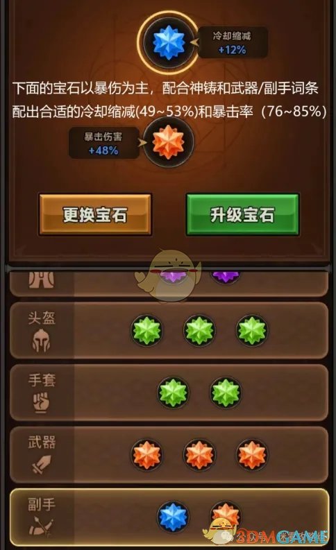 ③宝石最后两排以暴击伤害为主,根据神铸和装备,再补够冷却和暴击率。
