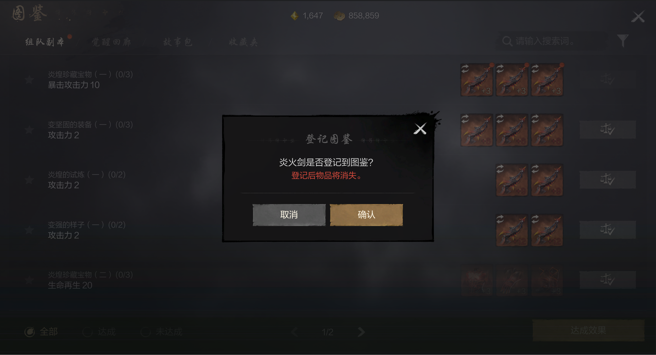 获取对应装备,在图鉴的组队副本中登记,登记后物品消失,满足条件即可获得属性。武器可替换为同品质的其他武器,没有固定武器类型限制。装备需要对应类型来进行登记。