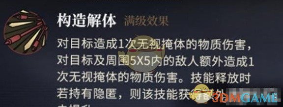 可以对目标造成一次无视掩体的物质伤害,之后还能对范围内敌人造成伤害,同时技能释放时若有隐匿,那么还能获得额外的暴击。