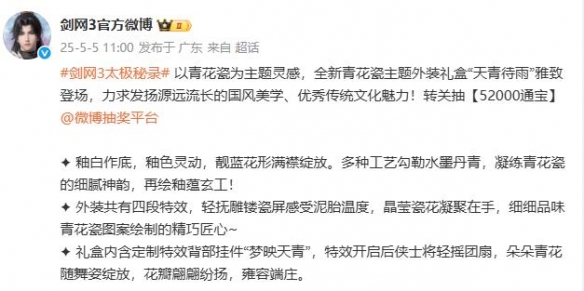1、全新青花瓷主题外装礼盒【天青待雨】将于2025年5月8日正式上线;