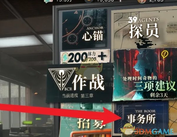 1、在游戏主页,点击右下角的事务所前往详情页;