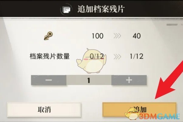 4、最后选择追加数量,点击确定即可完成当档案残片的追加。