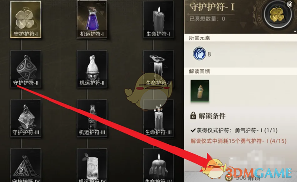 4、最后花费货币点击解锁即可获得仪式护符的效果。