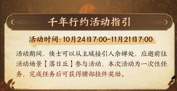 活动期间从主城接引人【佘婵】处,应邀前往活动场景【落日丘】参与活动;