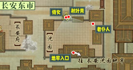 1、奇遇触发后点击小黑狗然后前往长安东市对话【侍女】,之后翻墙进入沈园;