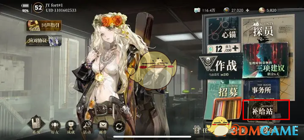 1、在游戏主页,点击右侧的补给站前往详情页;