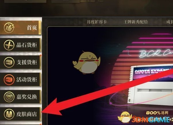 2、接着在补给站页面,点击左侧菜单栏中的皮肤商店前往详情页;