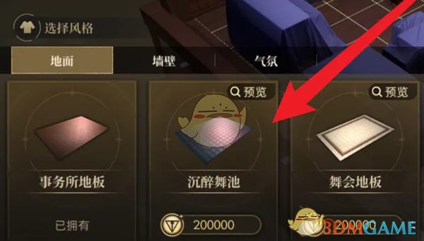 4、最后点击地面,选择心仪的地面进行更换即可,在更换前还可以通过预览来查看地面效果。
