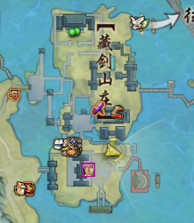 6.在藏剑山庄的庄字下括号的下方门前(藏剑山庄右下角的一个亭台码头附近),找到NPC ”叶寒台“ 与其对话