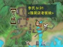 8.在贺城左上角区域的入口附近找到NPC “服装店老板娘李氏”,易容(褐色包裹)后与其对话
