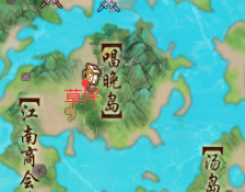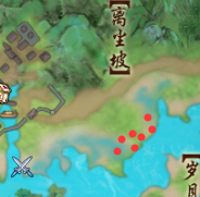 13.飞去唱晚岛,互动 晚字的左侧的草垛(图为草垛详细位置),等待剧情结束后对话 “茶摊小二”,再互动 “雷首飞电”