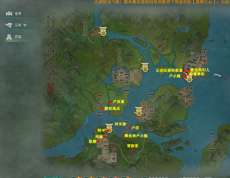 1. 奇遇触发后,去百溪右上角传送点找NPC卢小随对话