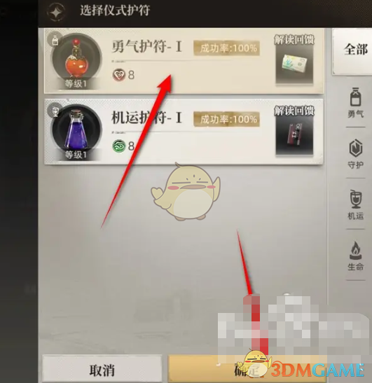 4、选择一个仪式护符后点击右下角的确定。