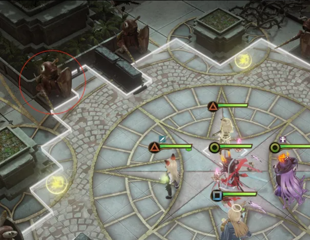 M310关卡需要我们把上图中位于左侧的这个雕像给炸掉即可,但是大家需要注意,这个雕像在我方角色靠近到它的2圈范围内时会触发其变身为敌人的效果,所以在炸掉前可不要触发了其变身的效果。