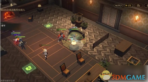 1、在第四关中使用角色的技能摧毁中间的桌子。