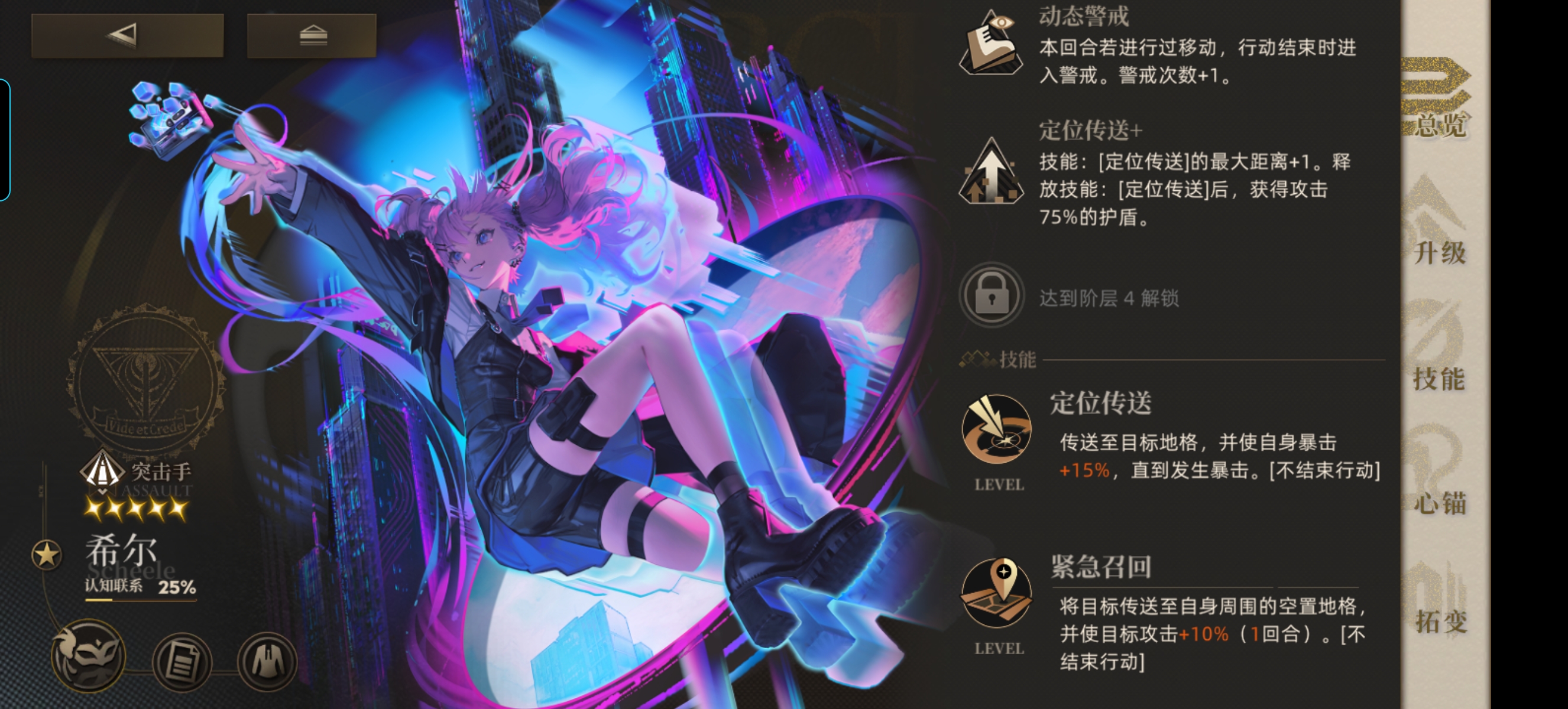 这种情况,维罗妮卡(简评在下面)申请出战,1偏斜直接顶着警戒上,干掉后因为触发了封装体特性,加上4星满拓变容易,直接3警戒。