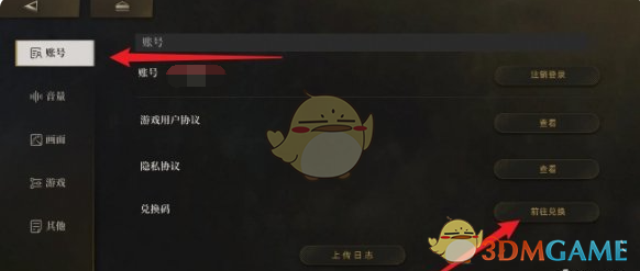 3、接着点击左侧的账号选项,之后找到兑换码后方的前往兑换按钮。