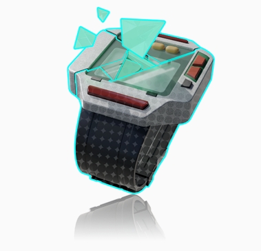 曾为乔伊佩戴的、塑料材质的银色方形电子腕表。经由摩丹实验室改造后,能够发射使用后需要“充能”的能量弹能量来源于乔伊大脑中、已被解读完毕的信息,但对于该腕表的具体充能方式,乔伊尚未进行过展示。
