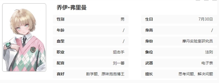 乔伊多次强调不用以对待儿童的方式接触他。虽然外表看似年幼,但他在作战和日常交流中展现出的沉着与可靠已超过常人。