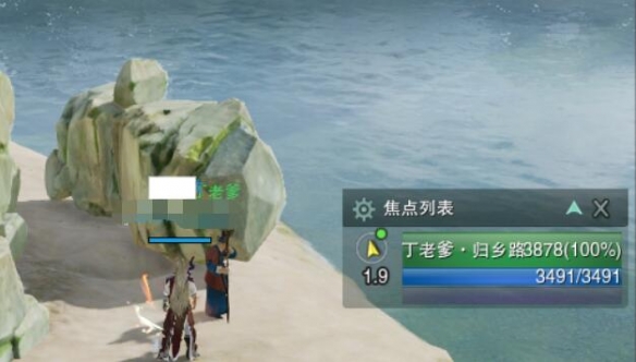 5、去找【糖葫芦贩子】给一串糖葫芦,然后去找【丁老爹】(水边很显眼的石头柱子旁边);