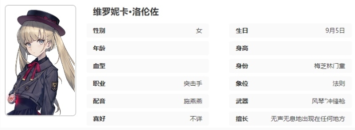 维罗妮卡小姐的格言是行动胜于言谈,而她用来贯彻这一理念的工具就是手上那把沉重的“风琴”冲锋枪。她总能悄无声息地出现在指定地点,在完成任务以后又悄无声息地回来。