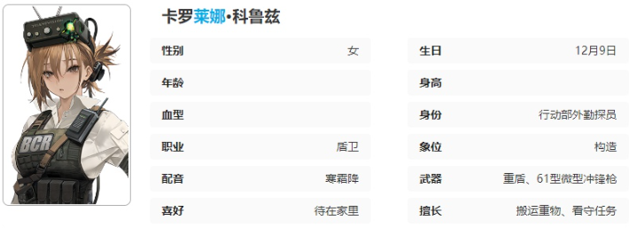 具备优秀的防御能力和足够的机动能力,能为队友提供及时的安全防护。与塔拉斯克探员同行时,可以多鼓励她站在最前面。