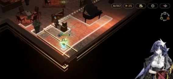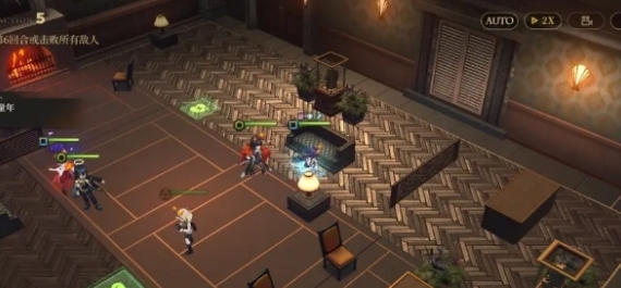 1、在第四关中使用角色的技能摧毁中间的桌子。