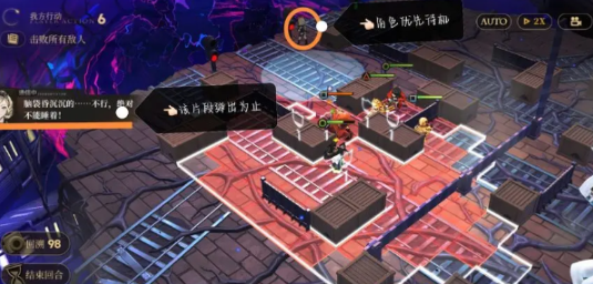1、在第四关中从右上将角色安置在左上的垃圾桶处,完成战斗后触发剧情。