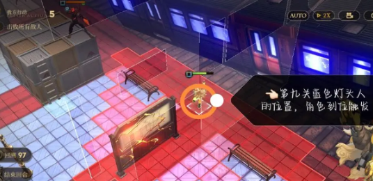 2、在第九关中在蓝色灯头人脚下处触发剧情,该剧情会在战斗结束后触发。