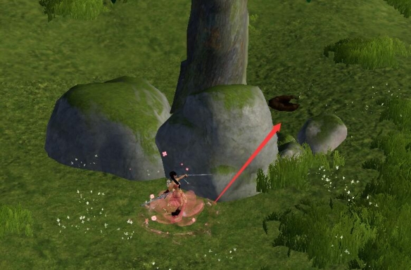 4、去找【康宴别】对话,使用【灵显丹】,跟着白色的烟雾走到一棵树的石头;