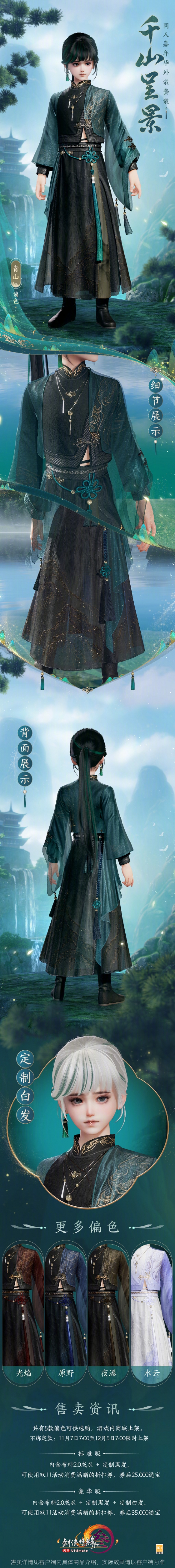 同人嘉年华外装千山呈景即将在11月7日上线,很多玩家都想知道剑网3时装千山呈景长什么样,外观有5种偏色,且分为标准版和豪华版两种,都可使用折扣券,接下来就由小编给大家带来了详细的《剑网3》同人嘉年华外装千山呈景外观一览。