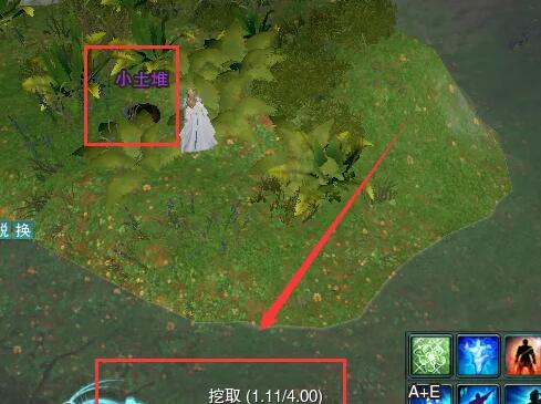 2、回去对话【苗森尔】后去溪山渡上方互动【小土堆2】,获得【脏兮兮的衣角】;