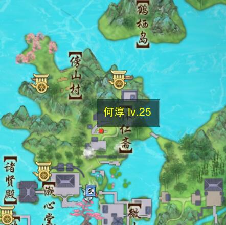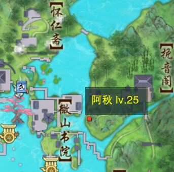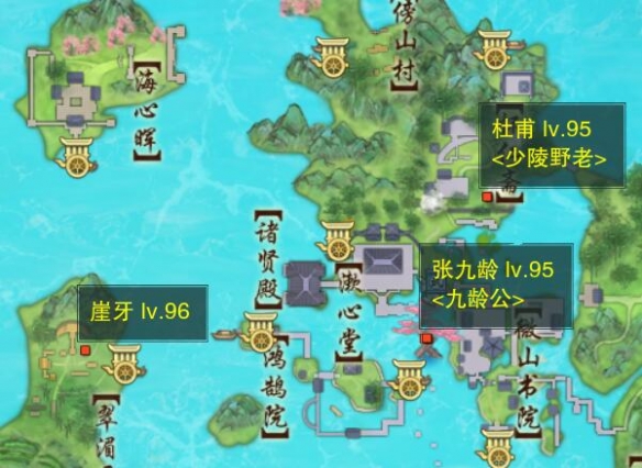 2、然后去图示的位置找【崖牙、 张九龄、杜甫、王维】获得四份调查笔记;