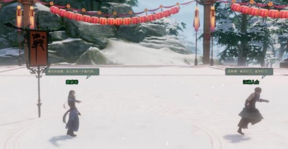6、与【楚辞岩】、【紫晴】对话按QTE拦住紫晴之后连续4天来该处找【楚辞岩】切磋;