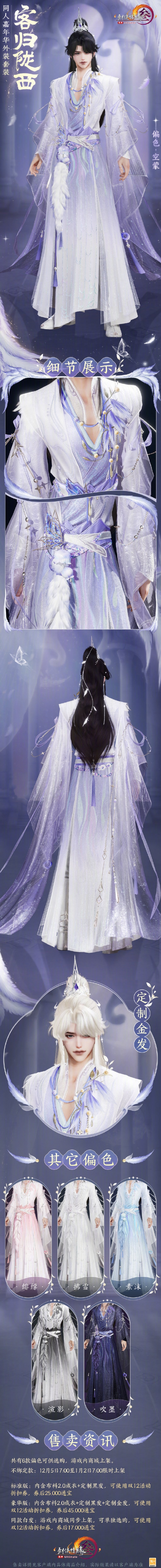 客归陇西是即将在12月上线的时装,很多玩家想知道同人嘉年华客归陇西长什么样,该时装有6款偏色,除去吹墨款式其他的都是以白色为主,有两种版本可以选购,接下来就由小编给大家带来了详细的《剑网3》同人嘉年华客归陇西外观一览!