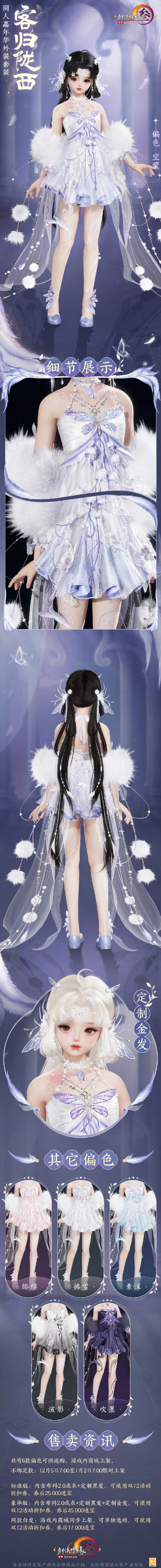 1、该时装将在游戏内商城上架,一共有6款偏色,两种版本;