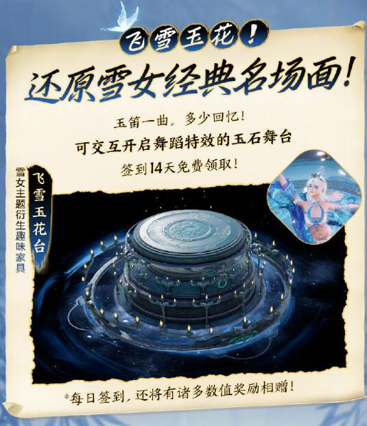 2、雪女主题衍生家具:飞雪玉花台
