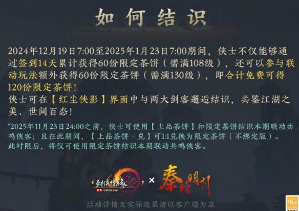 联动侠客卫庄盖聂即将上线,很多玩家想知道秦时明月联动侠客怎么获得,在【红尘侠影】界面中可使用限定茶饼通过喝茶获取侠客,活动过后将仅可使用限定茶饼结识本期联动共鸣侠客,接下来就由小编给大家带来了详细的《剑网3》秦时明月联动侠客获得方法!