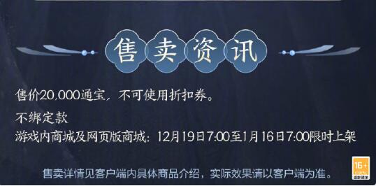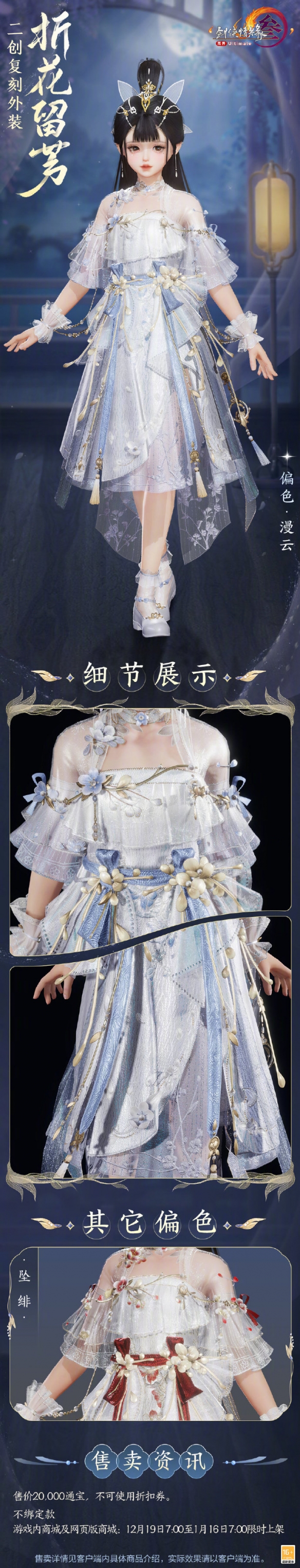 1、二创经典外观【折花留芳】将在2024年12月19日7:00-1月16日7:00期间上架;