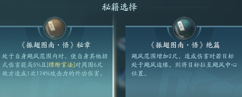 这个技能本身偏pvp,选出秘籍秘章可变为新技能,所以pve可选秘章,pvp可选绝篇效果。