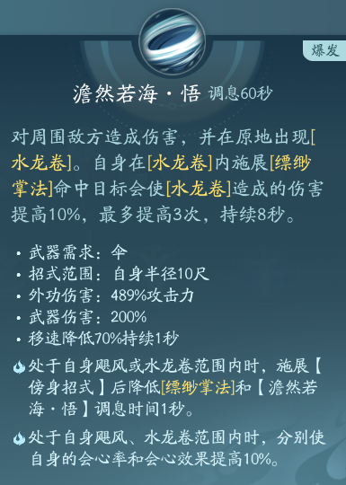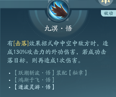 浮游:续减伤免控,物化手长,逐波绝篇秘籍唯一生效手段;秘章秘籍可构筑挑飞击落循环,可联动逸步&跃潮;绝篇秘籍可搭配溟海&逐波。