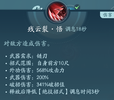 技能为:金戈(左手链)/残云(伤害)/骤雨(右手链)/隐风雷(左手链)