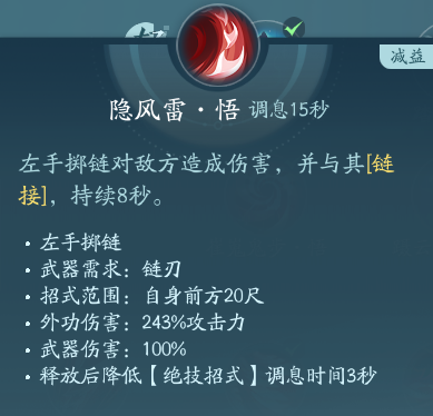 “隐龙诀·悟”施展时,以可变换多重形态的链刃为兵器,攻守兼备