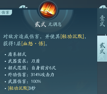 是个控制伤害技能,可以封轻功控制击倒对方。PVP点绝篇,PVE点秘章。