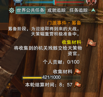 收集机关残骸上交,捡满100个再去交任务,推荐去天策残枪大阵的阵字还有这个点位对面栅栏旁边捡。