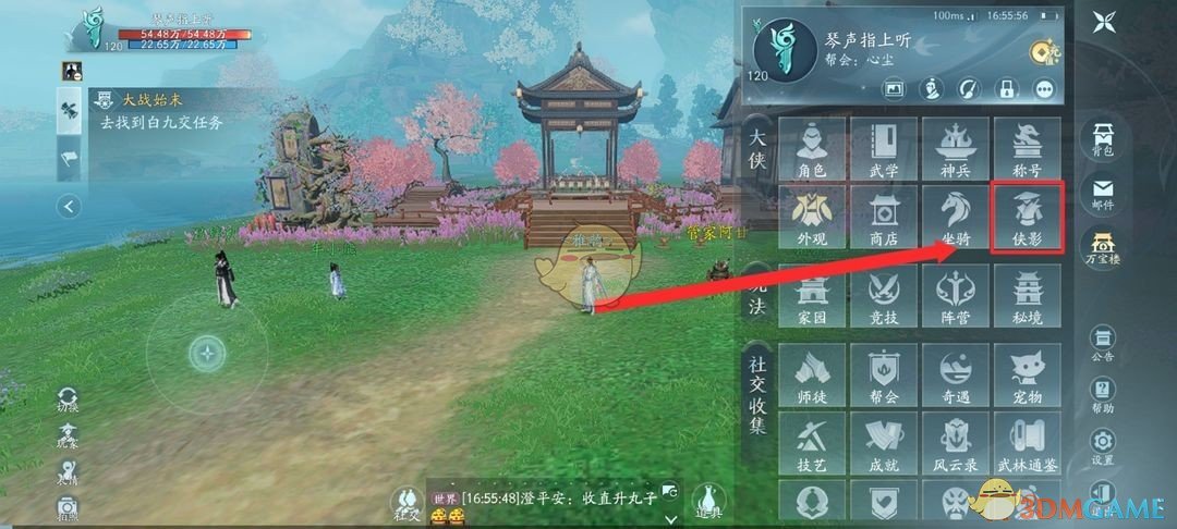 1、首先我们需要进入到游戏主页面,在右侧点击侠影。