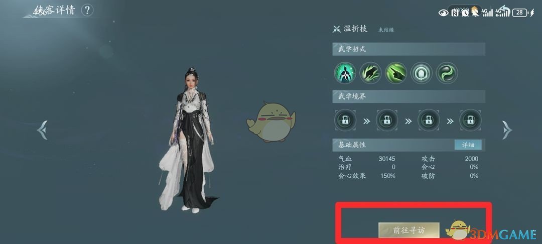 3、选择一位可雇佣侠客进入到详情页面,在右下角的位置点击前往寻访。