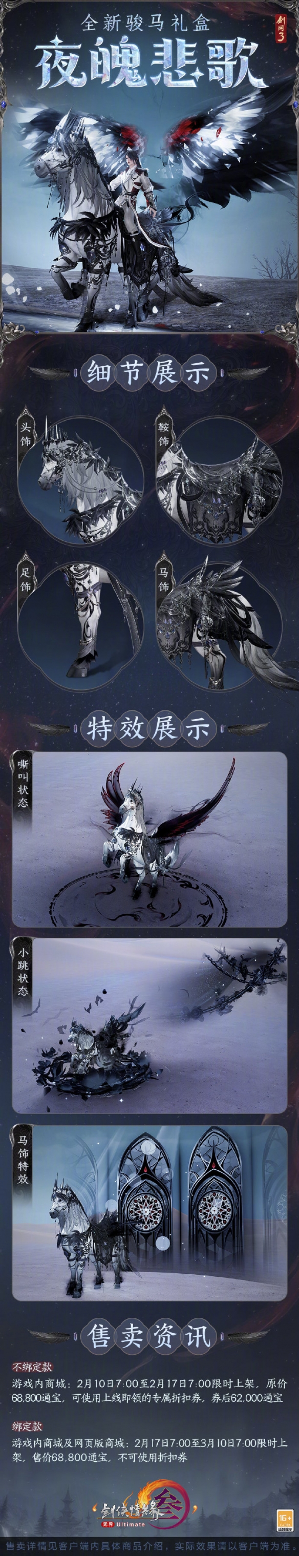 1、骏马礼盒【夜魄悲歌】分为不绑定款和绑定款两种;