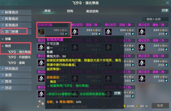 龙门绝境商店、武林通鉴、云从物资